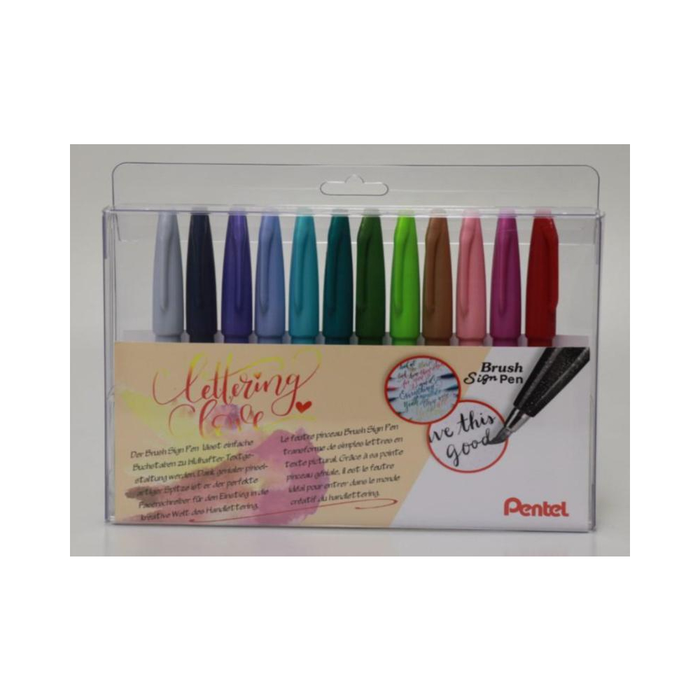 Pentel Brush Sign Pen 12er Set Pastell Farben